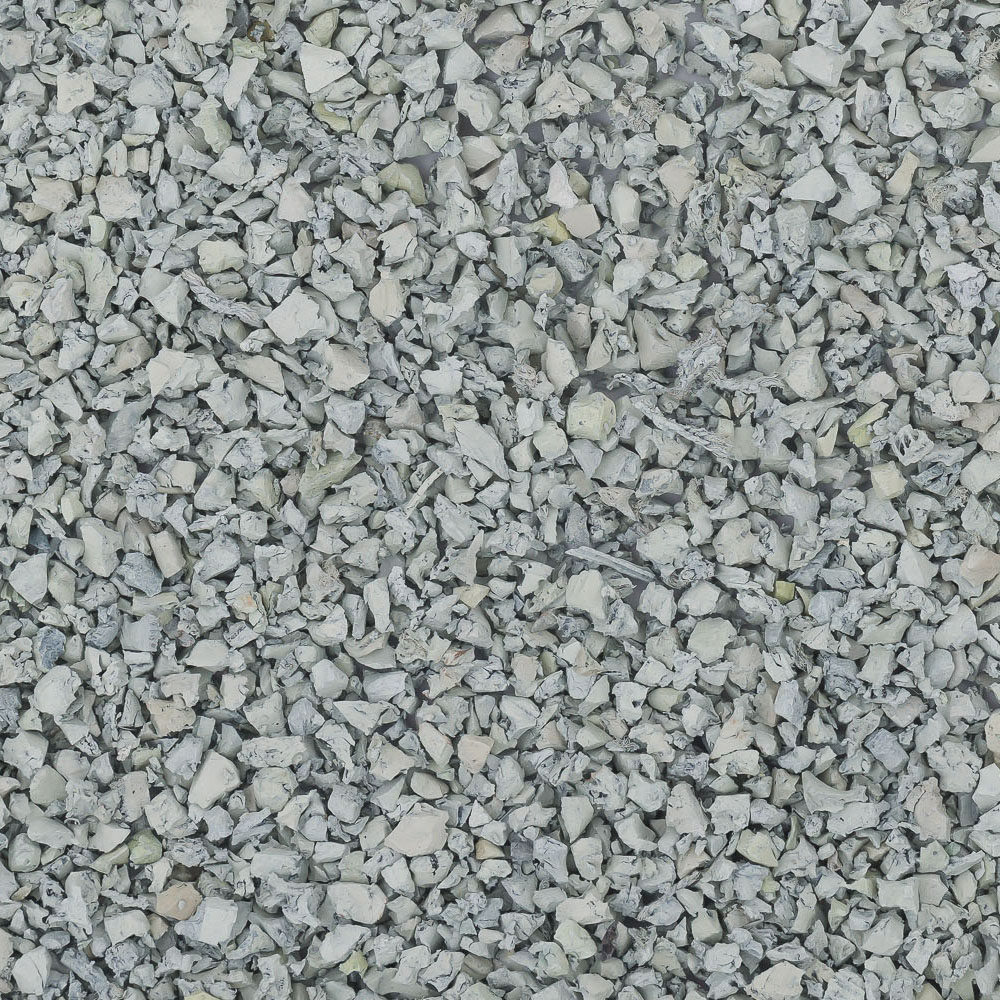 SBR-крошка белого цвета — продукт вторичной переработки, она производится несложным способом из недорогих материалов (использованных грузовых и легковых покрышек), и является одним из самых доступных по цене полимерных составов на основе каучука. Покрытие из СБР-крошки применяется для обустройства пешеходных зон, детских и спортивных площадок и различных элементов ландшафтного дизайна, а его срок службы составляет 10-15 лет.