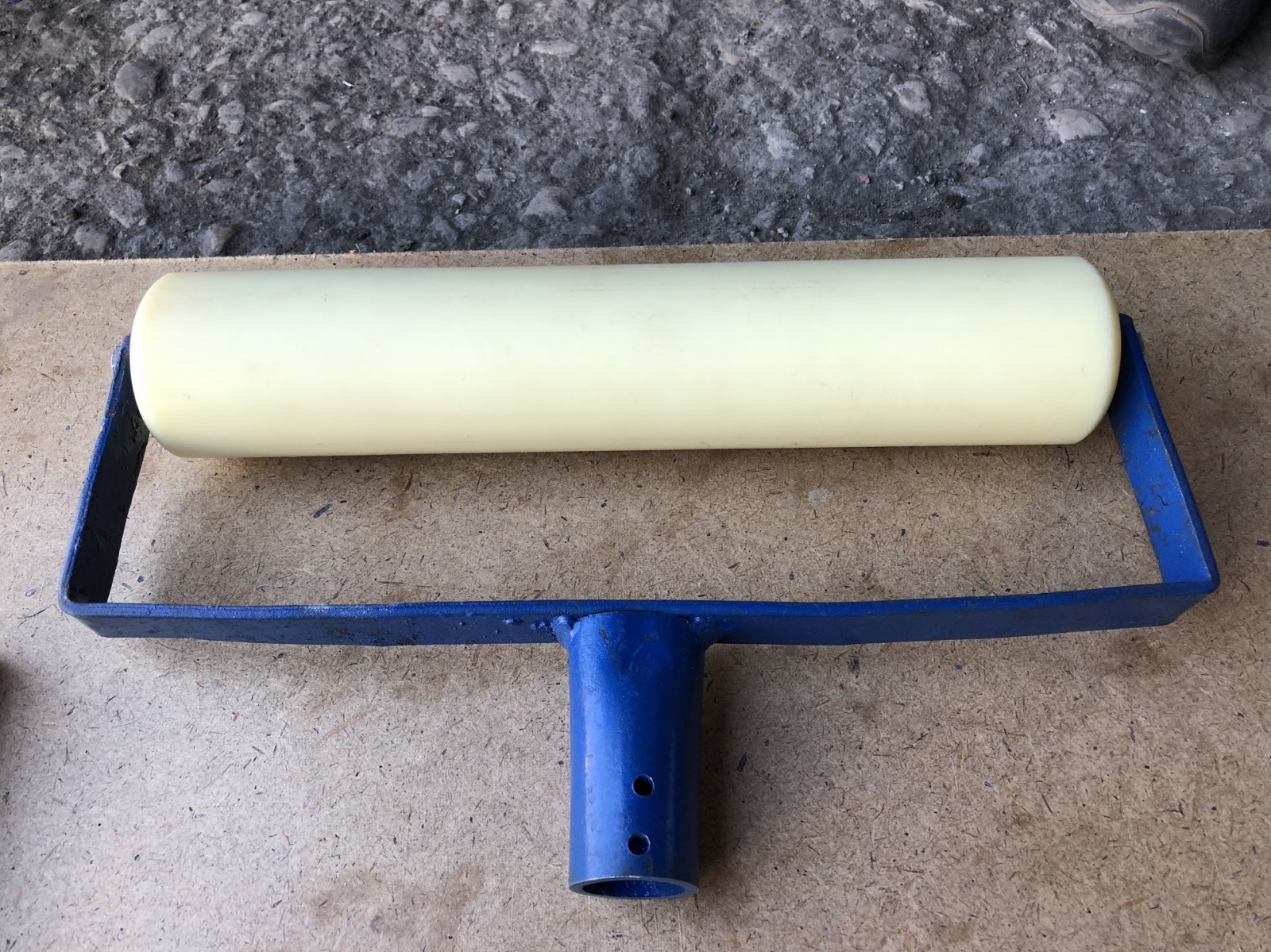 Валик укаточный шириной 300 мм — это вспомогательный инструмент для уплотнения резиновых покрытий после укладки. Сделан из полимерных материалов и нержавеющего металлического сплава.